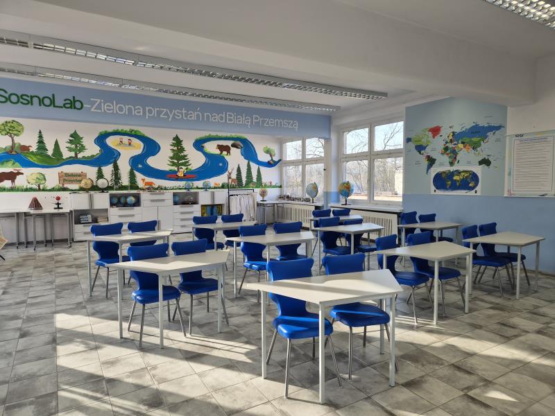 Szkoła posiada nowoczesne sale lekcyjne np.: ekopracownia " SosnoLab - zielona przystań nad Białą Przemszą", która została dofinansowana ze środków Wojewódzkiego Funduszu Ochrony Środowiska i Gospodarki Wodnej w Katowicach w ramach konkursu "Zielona Pracownia_Projekt \'2024", pracownia informatyczna, pracownia do nauki języków obcych, pracownia j. polskiego, pracownia matematyczna. Wszystkie pracownie wyposażone są w tablice i monitory interaktywne. Do dyspozycji dzieci jest także sala sensoryczno – logopedyczna oraz nowoczesne zaplecze sportowe. Szkoła posiada świetlicę szkolną z bogatym zasobem gier oraz bibliotekę.